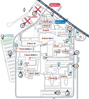 Bike racks are located at B Block, H Block and F Block.